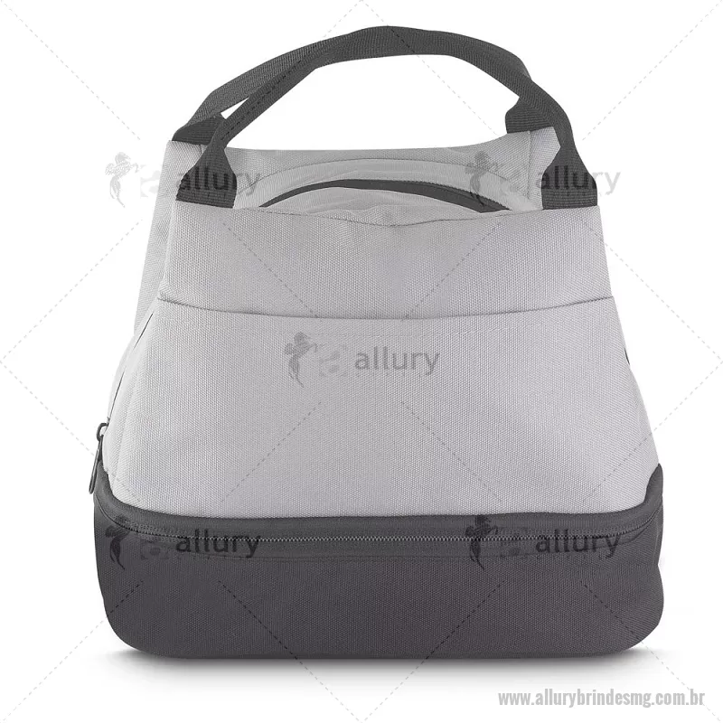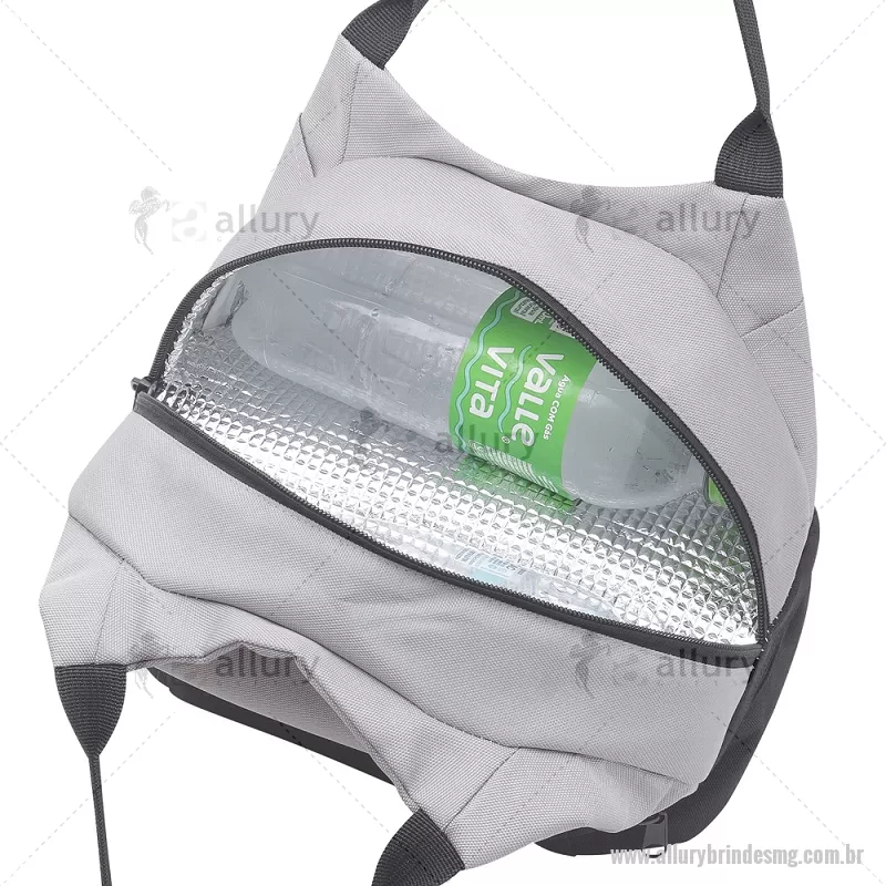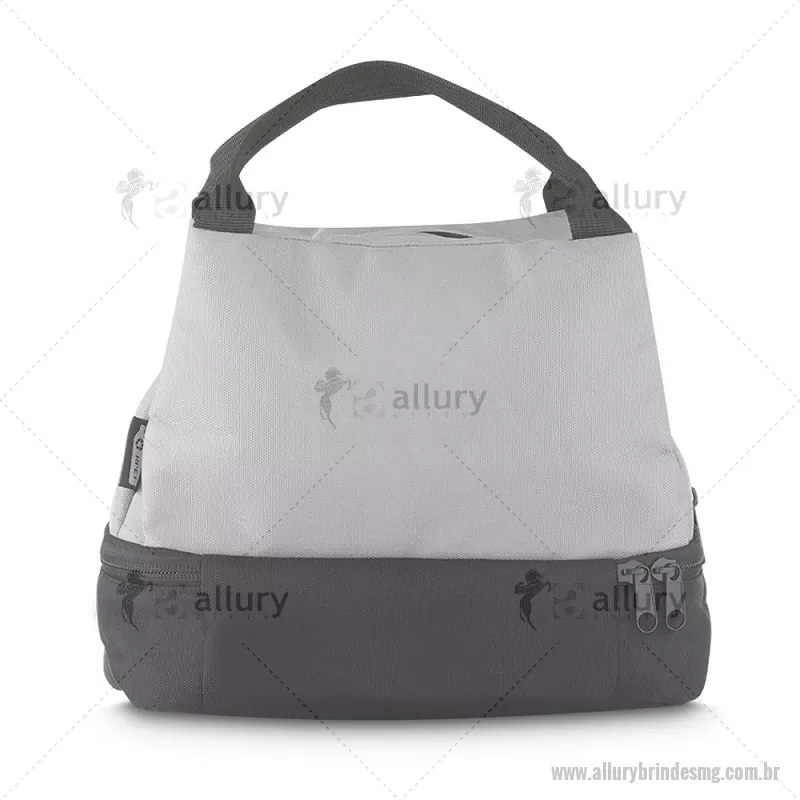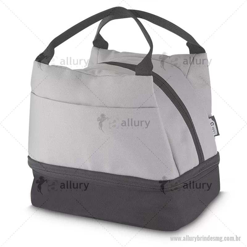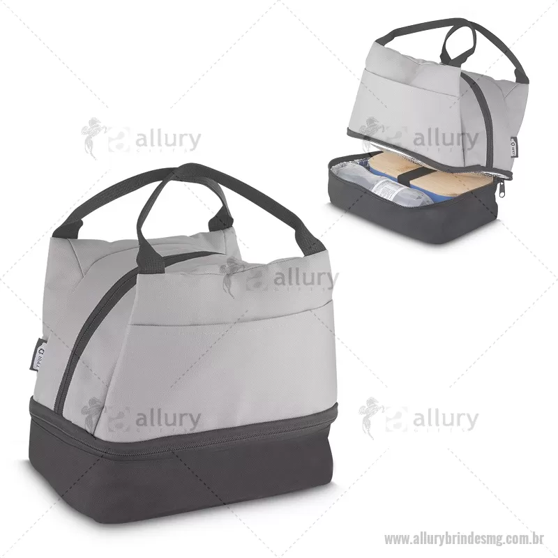 Bolsa térmica 7litros em tecido PET Reciclado com 2 compartimentos térmicos costurados, bolso frontal e alça de mão. Dimensão Produto: 21x24x15cm (AxLxP) Peso do Produto: 0,130kg Volume: 7L - - ALLMGBT094