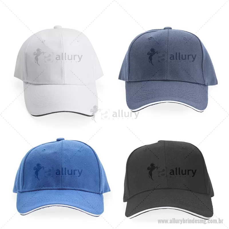 Boné Poliéster Aba Curva Descrição: Boné confeccionado em poliéster resistente a respingos dágua e com aba curva. Em tamanho único, ele é ajustável por meio de suas faixas de velcro na parte de trás. Altura : 13 cm x Largura : Aba: 18 cm Profundidade : Aba: 7 cm x Circunferência : 55,5 cm Peso aproximado (g): 73 - - ALLMGBON010